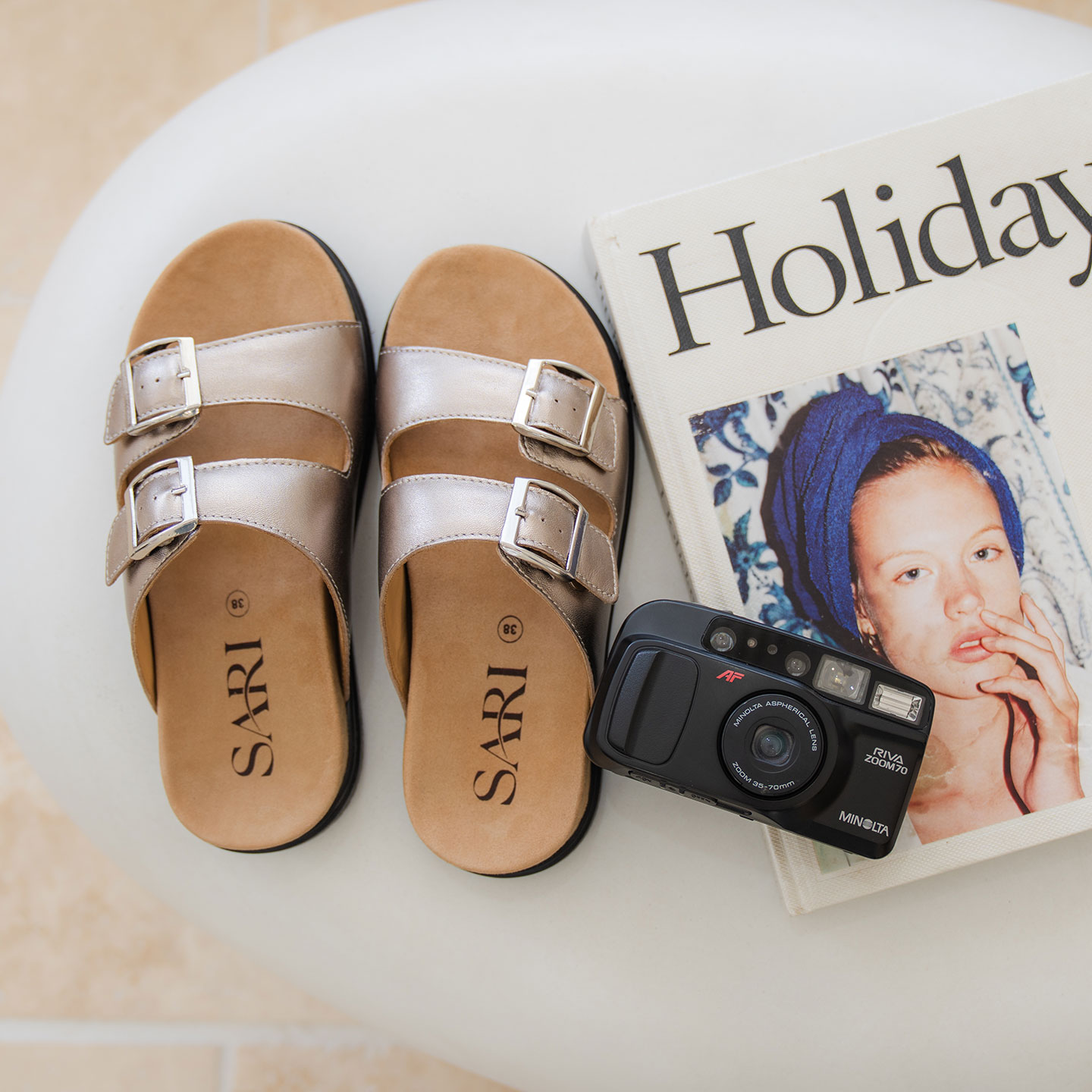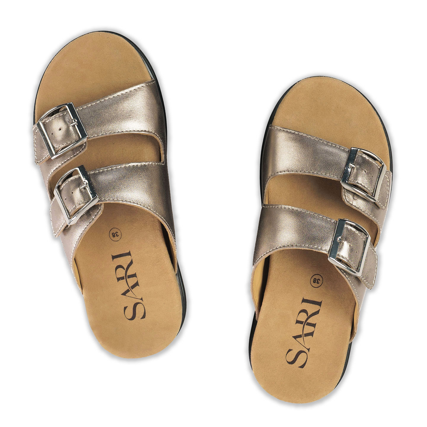 SARI ‘Maya’ Metallic – with arch support and two buckle straps